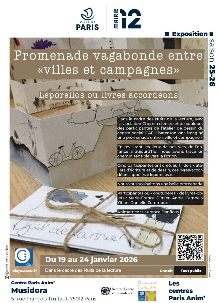 À l’occasion des Nuits de la lecture, découvrez l’exposition éphémère « Promenade vagabonde entre villes et campagnes », une présentation de leporellos ou livres-accordéons à voir du 19 au 24 janvier au CPA Musidora.