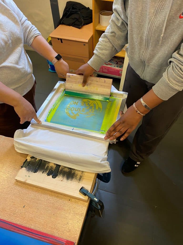 Le 22 mai, dans le cadre du festival On s’la coule 12, un chantier éducatif s’est organisé en partenariat avec la Mairie, la Fondation Jeunesse Feu Vert et le CPA Pina Bausch. Deux jeunes ont réalisé en sérigraphie les t-shirts destinés aux bénévoles et professionnels mobilisés le jour J. Cette technique d’impression artisanale permet de produire chaque pièce à la main. Une manière concrète d’impliquer les jeunes à toutes les étapes du festival, jusqu’à l’identité visuelle de l’événement.
