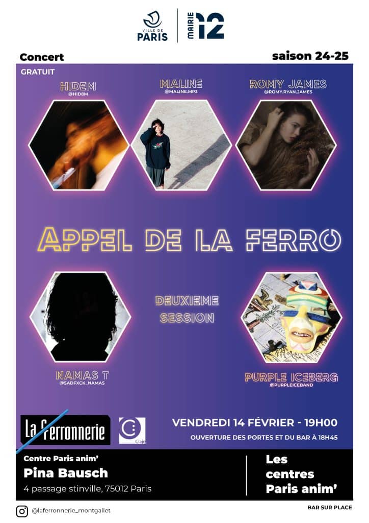 L’appel de la Ferro revient pour sa deuxième partie, le vendredi 14 février à la Ferronnerie. Venez nombreux et nombreuses découvrir ces nouveaux talents et leurs univers.