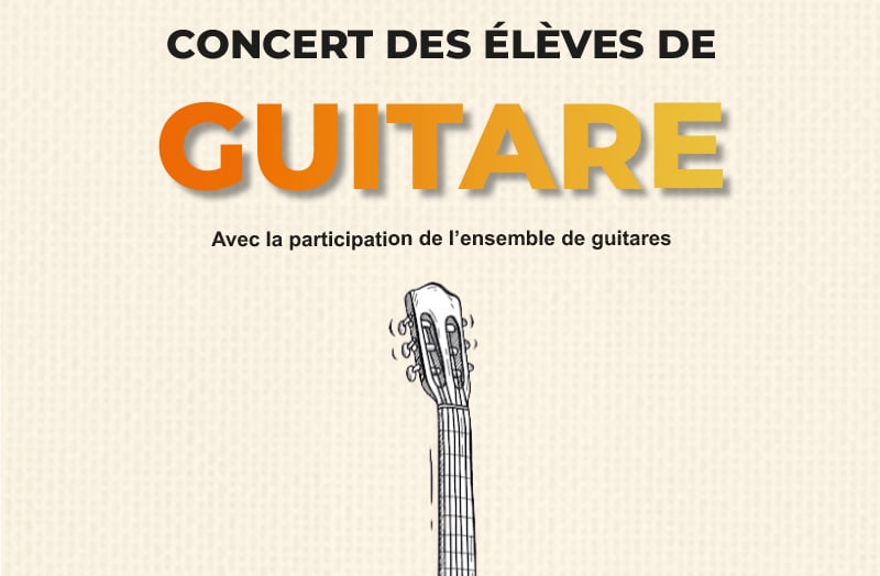Le vendredi 6 février 2026 à 19h00, le CPA Musidora accueille le concert des élèves de guitare avec la participation de l’ensemble de guitares.