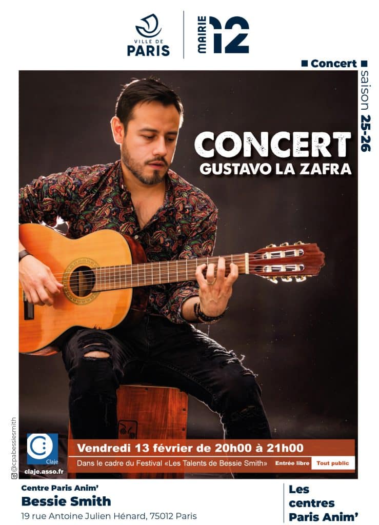 Dans le cadre du festival « les talents de Bessie Smith » venez assister au concert de Gustavo La Zafra, le vendredi 13 février au CPA Bessie Smith.