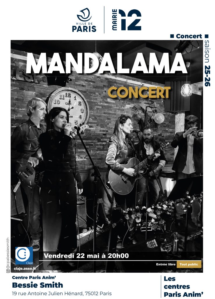 Venez assister au concert Mandalama, le vendredi 22 mai au CPA Bessie Smith.