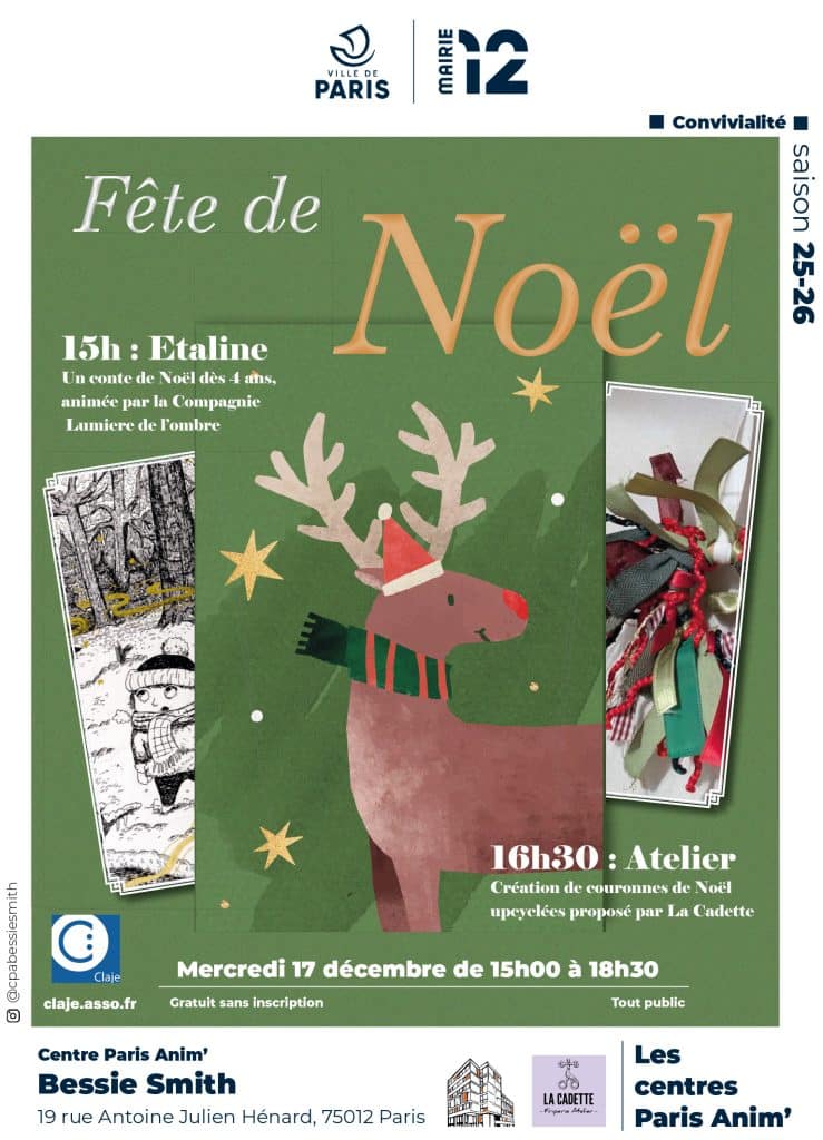 Au programme : « Etaline », un conte de Noël accessible dès 4 ans, suivi d’un goûter et d’un atelier de couronnes de Noël upcyclées proposé par La Cadette.