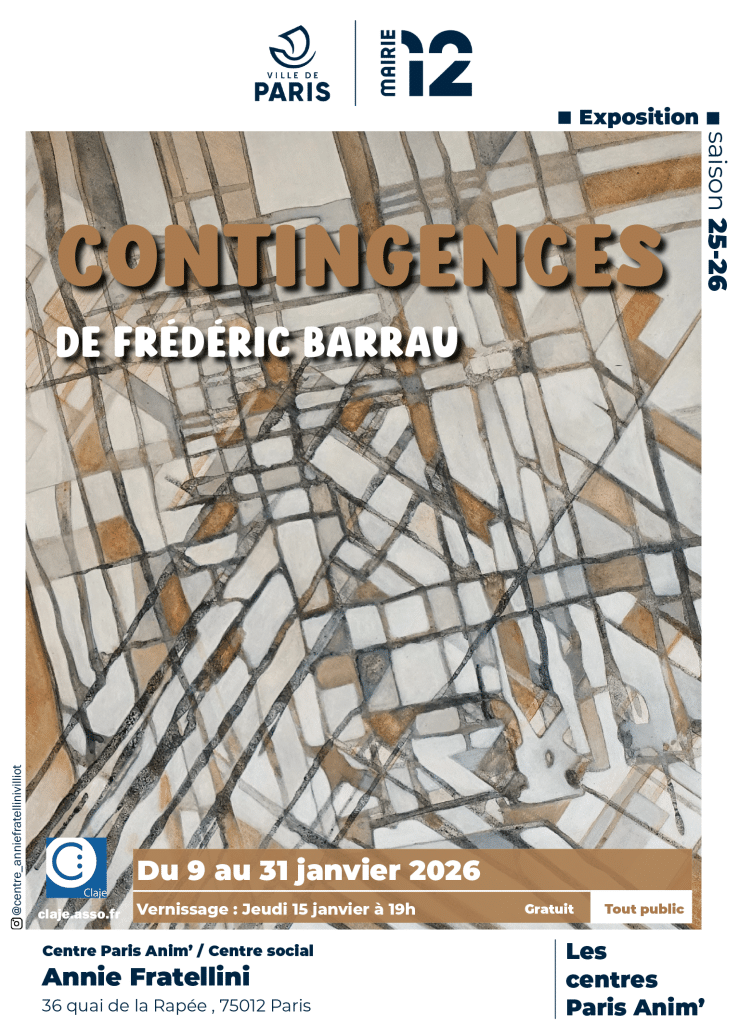 L’exposition « Contingences » de Frédéric Barrau se tiendra au CPA Annie Fratellini du 9 au 31 janvier 2026.