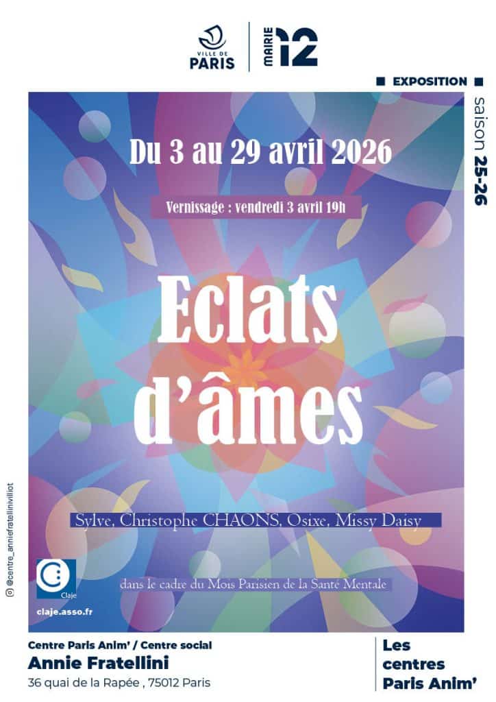 Danse le cadre du Mois Parisien de la Santé mentale, le Centre Annie Fratellini vous présente l’expo collective « Éclats d’âmes »