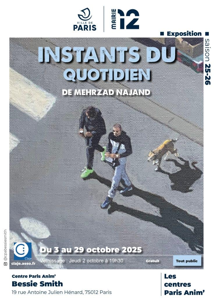 L’exposition « Instants du quotidien » aura lieu au CPA Bessie Smith du 3 au 29 octobre 2025, avec un vernissage le jeudi 2 octobre.