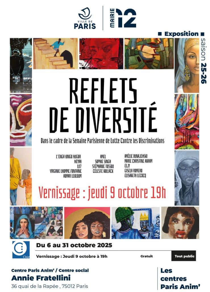 L’exposition collective « Reflets de diversité », se tiendra du 6 au 31 octobre 2025 au CPA Annie Fratellini, avec un vernissage le jeudi 9 octobre à 19h.