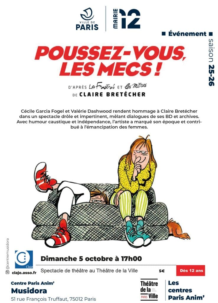 Le dimanche 5 octobre 2025 , le CPA Musidora vous invite à découvrir « Poussez-vous les mecs ! » , un spectacle de Cécile Garcia Fogel au théâtre de la ville.