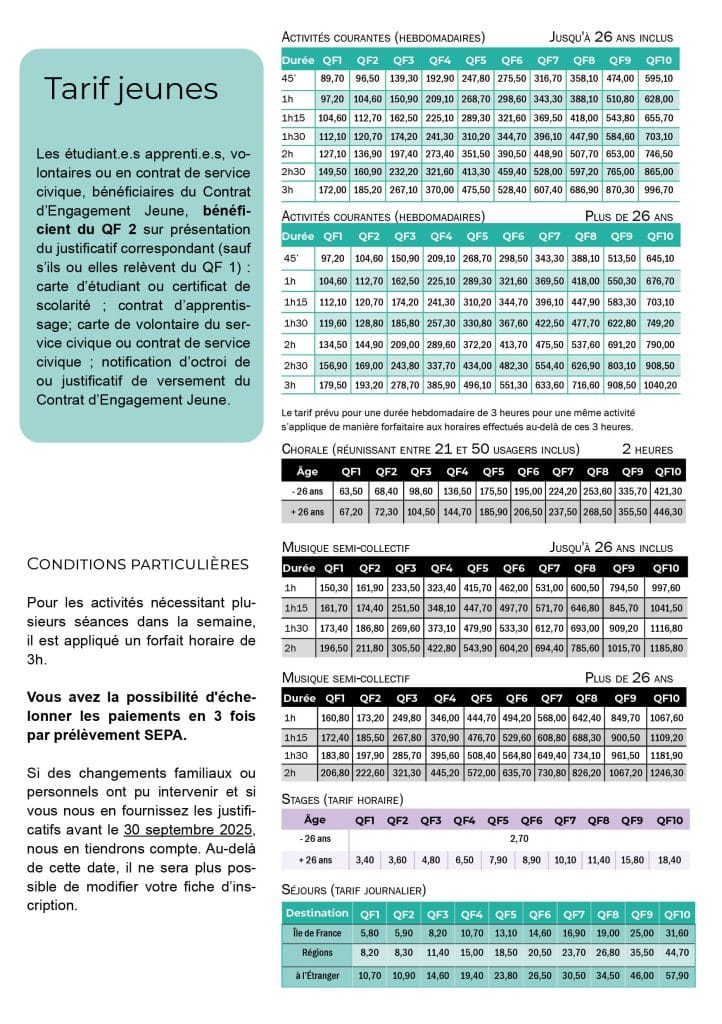 Tarif Jeunes